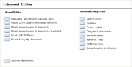 The Music Dept. Inventory Database and the User Guide are products of Costume / Uniform Inventory Resources www.costumeinventory.com