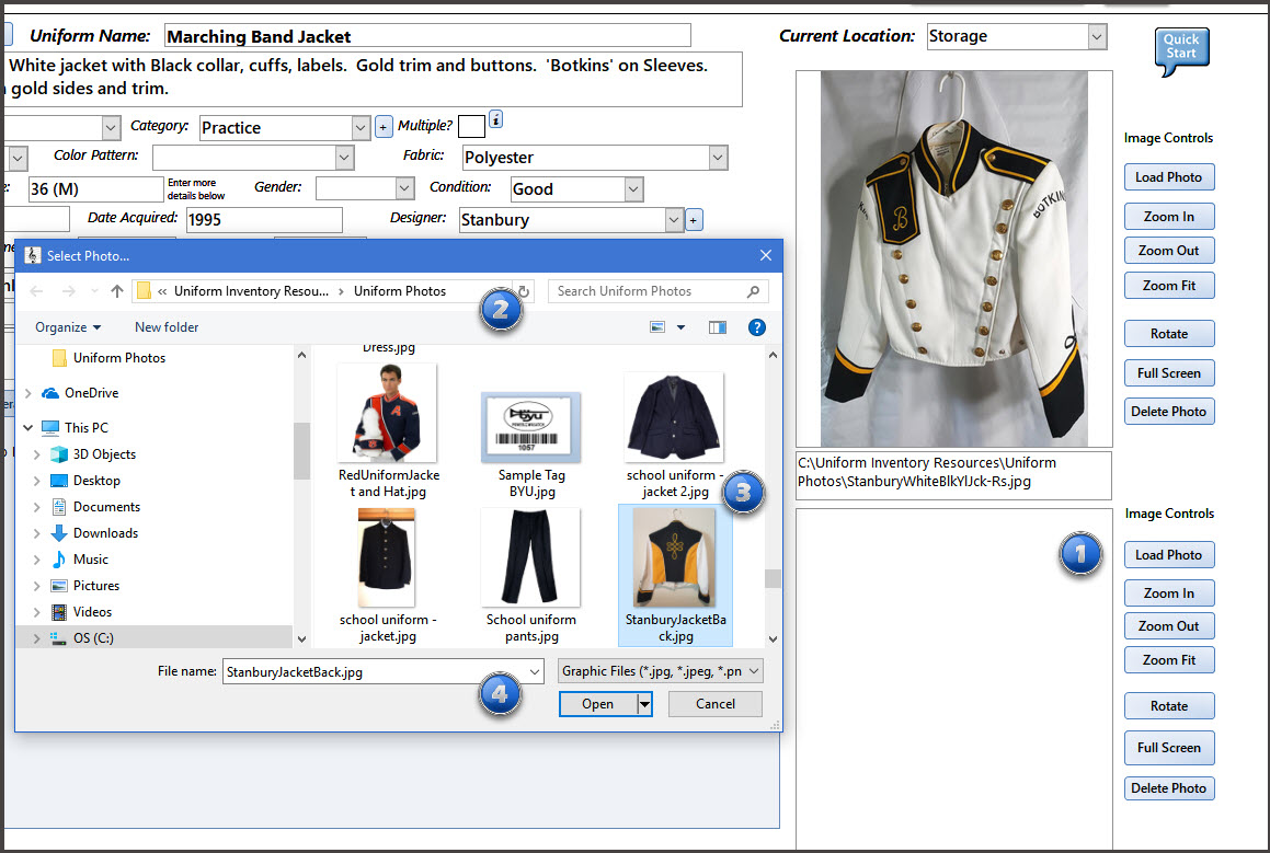 1) To Add (Load) a photo to a Uniform record :
