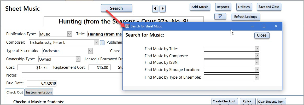 By Type of Ensemble - Note: To see all Sheet Music for a specific Type of Ensemble - go to the Reports section and print the report "All Sheet Music by Type Of Ensemble". You may print all or select a specific type of ensemble.