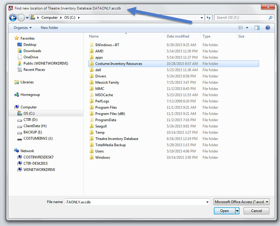You may change the destination folder at the time of the installation. If you change the installation folder you will be prompted for the location of the database tables which is a file called Theatre Inventory Database DATAONLY.accdb . Contact us for more information.