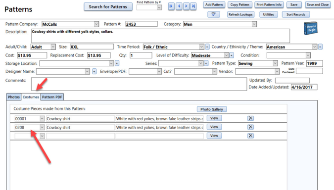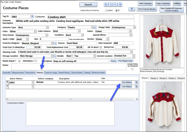 Construction notes can be added to help you describe anything special about the construction of the costume.
