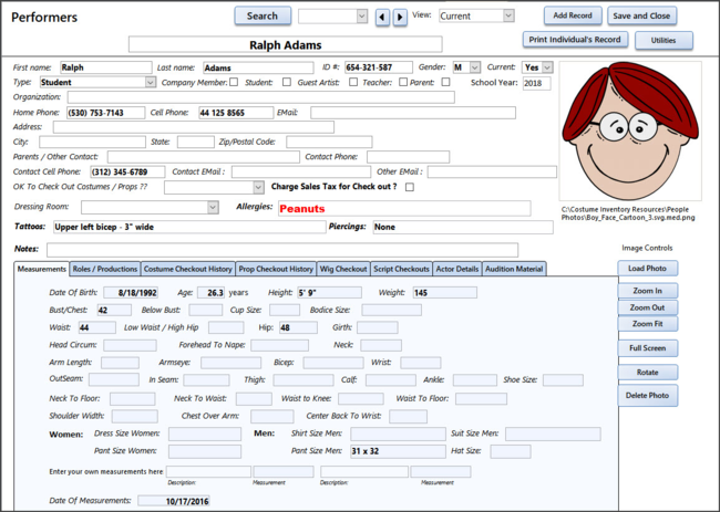 You can create a Performer/Individual record for someone before they check-out any costumes, props, wigs, or scripts.
